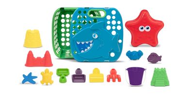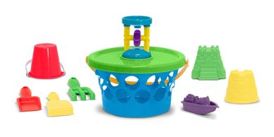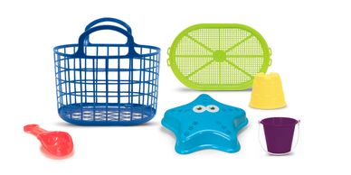 This set has everything you need for a fun-filled beach day in one convenient oversized storage basket. Includes sand tools, water mill, castle molds, and more.