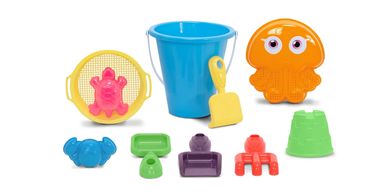 At the beach, in the sand box, or in the backyard, this set promises hours of imaginative play. Sand tools, sand forms, castle mold, pail and sieve.