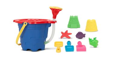 Make a splash with our sprinkler pail. This unique sprinkler combines the joy of water play with the convenience of a pail. Includes castle molds, sand forms and sand tools too.